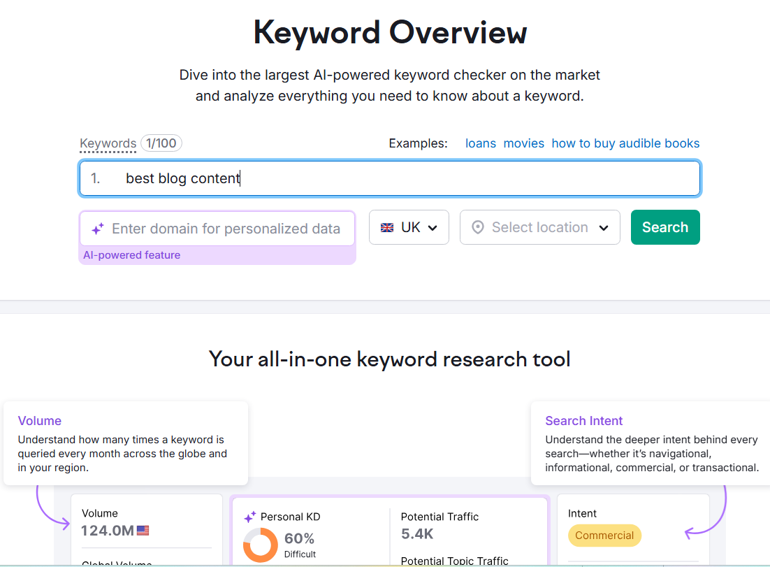 SEMrush offers advanced keyword research tools to help you discover high-ranking keywords with search volume, keyword difficulty, and competitive analysis.