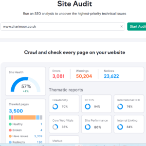 Get a comprehensive website audit that identifies SEO issues like broken links, duplicate content, missing meta descriptions, and slow-loading pages.